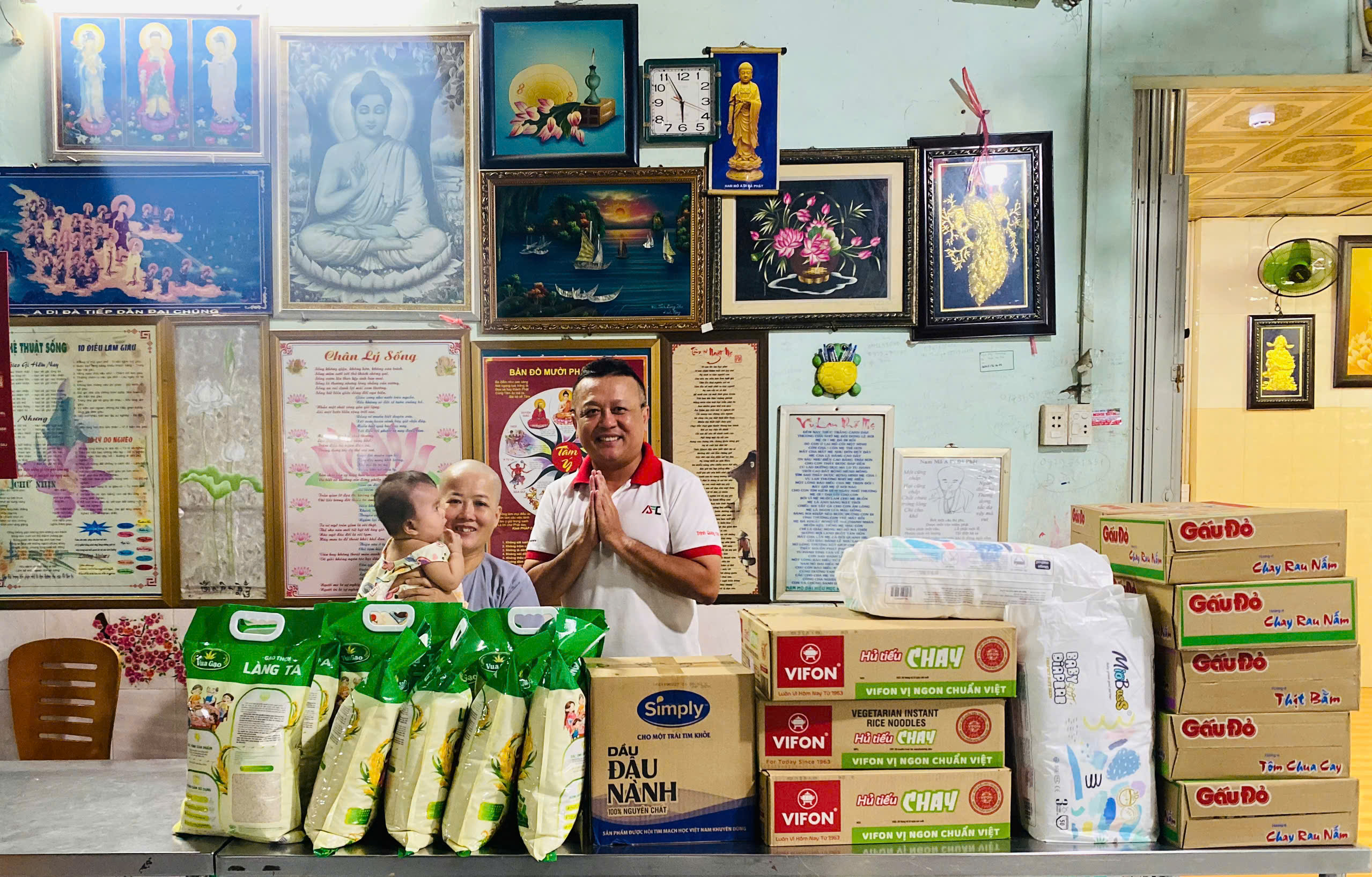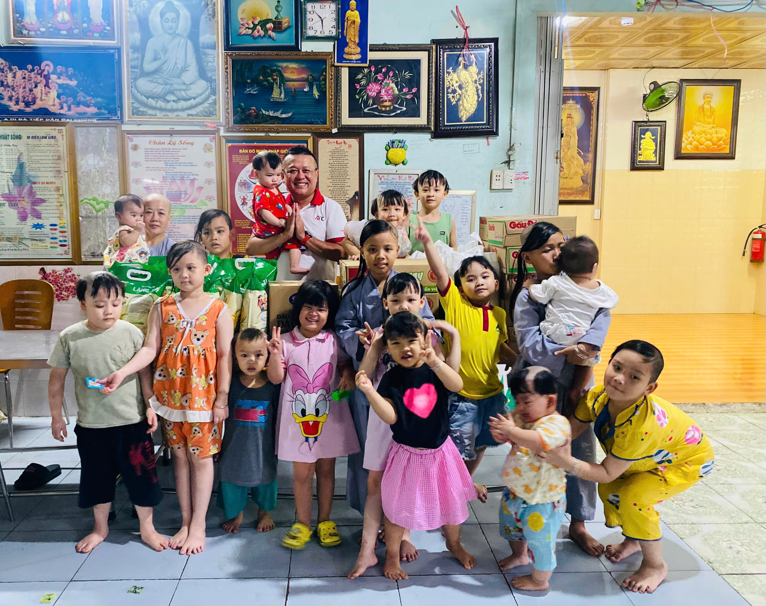 Tại nơi đây, hơn 30 trẻ nhỏ mồ côi và có hoàn cảnh đặc biệt đang được nuôi dưỡng dưới sự chăm sóc tận tình của quý sư cô và nhà chùa. Hiểu rõ những khó khăn của mái ấm, tập thể cán bộ công nhân viên AFC đã tổ chức buổi thiện nguyện đầy ấm áp, mang theo những phần quà gồm gạo, mì gói, thực phẩm chay, sữa, tã và nhu yếu phẩm thiết yếu.
